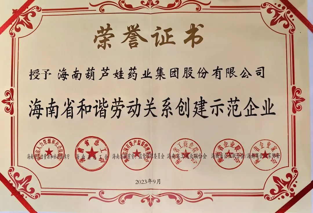 菠菜导航药业集团获评“海南省和谐劳动关系创建示范企业”